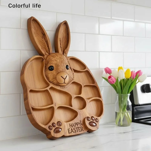 Adorable Rabbit Wooden Charcuterie Board 2026, Easter Bunny Deli Serving Tray with Compartments.